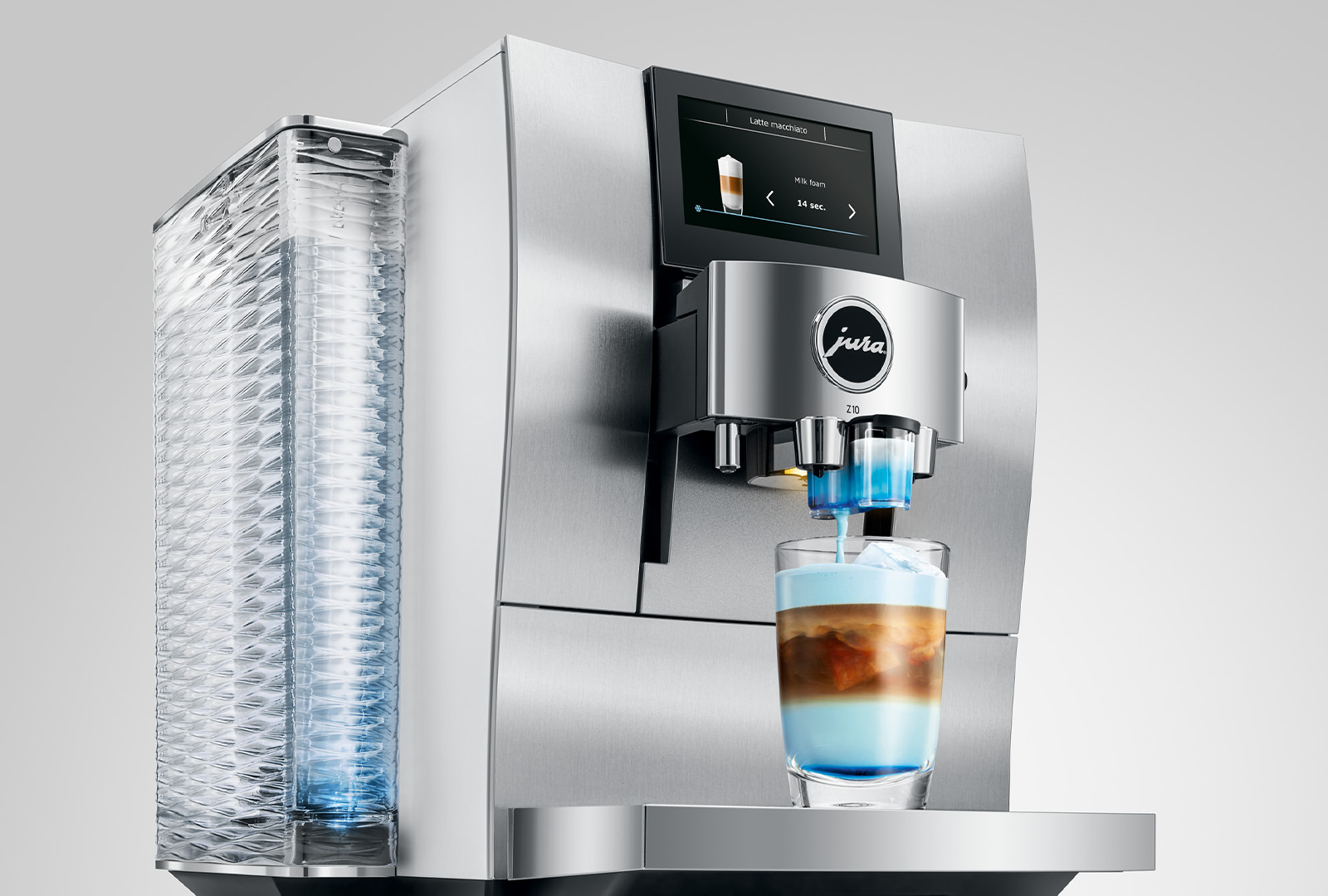 To ensure the optimum grind for every speciality, JURA engineers developed the Product Recognising Grinder (P.R.G.). The electronically controlled high-performance grinder adjusts in a fraction of a second to the predefined consistency of grind – much more quickly and frequently than could be done manually. Its spectrum ranges from very fine for short classics to very coarse for long specialities. But coffee lovers don’t need to worry, because the adjustment takes place automatically every time a beverage is prepared and, if preferred, can also be individually selected before each preparation with the Aroma Selection feature.